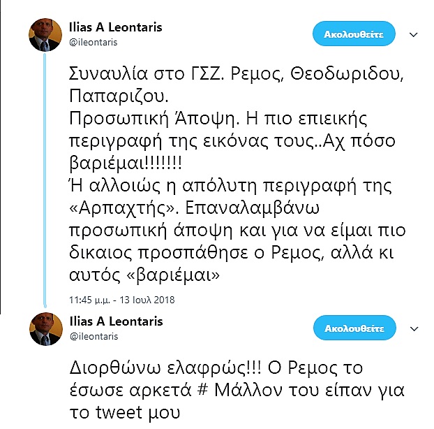 Ή αλλοιώς η απόλυτη περιγραφή της «Αρπαχτής». Επαναλαμβάνω προσωπική άποψη και για να είμαι πιο δικαιος προσπάθησε ο Ρεμος, αλλά κι αυτός «βαριέμαι»— Ilias A Leontaris (@ileontaris) 13 Ιουλίου 2018