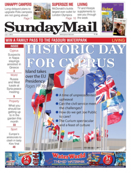 Υπό τον τίτλο «Ιστορική μέρα για την Κύπρο» στεγάζει το πρωτοσέλιδό της η αγγλόγλωσση “Cyprus Mail” που κάνει αναφορά στην ανάληψη της προεδρίας του Συμβουλίου της ΕΕ από την Κυπριακή Δημοκρατία και ότι αυτό συνεπάγεται και επικεντρώνεται ειδικότερα στις συναντήσεις και τις συνόδους που θα φιλοξενήσει η Κύπρος, στις προτεραιότητες της Προεδρίας και την προετοιμασία της Κρατικής μηχανής.