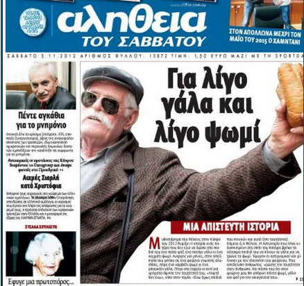Η «Αλήθεια», στο πρωτοσέλιδο θέμα της, με τίτλο «Για λίγο γάλα και λίγο ψωμί», γράφει για την ιστορία ενός άνεργου πατέρα, ο οποίος μη έχοντας χρήματα, πήρε από φούρνο γνωστής αλυσίδας ένα γάλα και ένα καρβέλι ψωμί και αντί χρημάτων έδωσε στο ταμείο την ταυτότητά του. Σε άλλο θέμα, η «Α» γράφει ότι οι δικηγόροι κατέρχονται σε στάση εργασίας την Τρίτη, με το μήνυμα ότι η Δικαιοσύνη καταρρέει. Η εφημερίδα δημοσιεύει επίσης την είδηση του θανάτου της Στέλλας Κακογιάννη – Σουλιώτη, γράφοντας ότι άφησε τη σφραγίδα της στα πολιτικά και νομικά δρώμενα της Κύπρου.