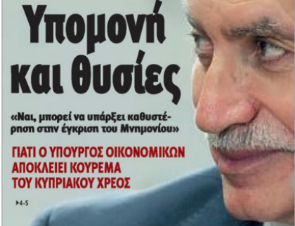 Η κυριακάτικη εφημερίδα «Η Καθημερινή» γράφει στο κύριο της θέμα με τίτλο «Ανοίγει αύριο ο δρόμος για 407 απολύσεις» πως αρχίζει η διαδικασία απολύσεων στις Κυπριακές Αερογραμμές, αποξένωσης τριών τμημάτων και μείωσης των μισθών κατά 10%. Αλλού αναφέρει πως ογδόντα τρεις προτάσεις, οι διπλάσιες από ότι αναμενόταν, υποβλήθηκαν συνολικά στην Υπηρεσία Τεχνολογίας στο πλαίσιο του πιλοτικού προγράμματος ανάπτυξης καινοτόμων προϊόντων και υπηρεσιών. Επίσης γράφει πως σε πρόσφατη έκθεση της γαλλικής Γερουσίας σχετικά με την κυπριακή κρίση, εντοπίζονται πολλές ευθύνες στο τραπεζικό σύστημα, ενώ σημειώνεται εκτενώς η απόπειρα της Λευκωσίας να εξαρτηθεί από τη Ρωσία.