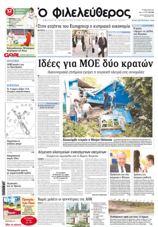 Ο «Φιλελεύθερος» γράφει στο κύριο του θέμα υπό τον τίτλο «Ιδέες για ΜΟΕ δύο κρατών» ότι με τη λογική της συνεργασίας δύο κρατών εμφανίζεται στις τεχνικές επιτροπές η τουρκική πλευρά, η οποία θα εγείρει θέματα που αφορούν «διευθετήσεις και ρυθμίσεις» που γίνονται μεταξύ δύο κρατών, δηλαδή διασυνοριακή συνεργασία. Αλλού γράφει ότι ετοιμάζεται νομοσχέδιο από τη Νομική Υπηρεσία που θα προνοεί δήμευση κλοπιμαίων εισαγόμενων οχημάτων. Σε άλλη είδηση γράφει για κατακόμβη νεκρών στην περιοχή του Κρασνοντάρ στη Ρωσία καθώς οι καταρρακτώδεις βροχές και οι πλημμύρες προκάλεσαν το θάνατο 155 ανθρώπων..