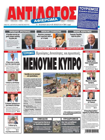 Η εβδομαδιαία εφημερίδα «Αντίλογος» αναφέρει στο κύριο της θέμα με τίτλο «Μένουμε Κύπρο» πως ο τουρισμός είναι σωσίβιο για την οικονομία υπό προϋποθέσεις και αφιερώνει την έκδοση σε αυτό το θέμα. Φιλοξενεί άρθρο του Προέδρου της Δημοκρατίας για τον τουρισμό στο οποίο αναφέρει μεταξύ άλλων ότι η Προεδρία της ΕΕ αποτελεί χρυσή ευκαιρία προβολής της χώρας μας. Φιλοξενούνται επίσης άρθρα και επισημάνσεις διαφόρων αξιωματούχων και αρμοδίων για το θέμα.