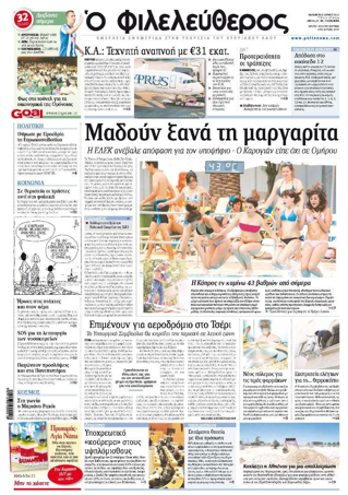 «Ο Φιλελεύθερος», με τίτλο «Μαδούν ξανά τη μαργαρίτα», στο κύριο του θέμα γράφει ότι η ΕΔΕΚ ανέβαλε την απόφαση για τον υποψήφιο για τις Προεδρικές εκλογές και ο Καρογιάν είπε όχι σε Ομήρου. Σε άλλο θέμα γράφει ότι το Υπουργείο Συγκοινωνιών επιμένει για αεροδρόμιο μικρών αεροπλάνων στο Τσέρι, ενώ αλλού γράφει για νέο πόλεμο για τις τιμές των φαρμάκων.