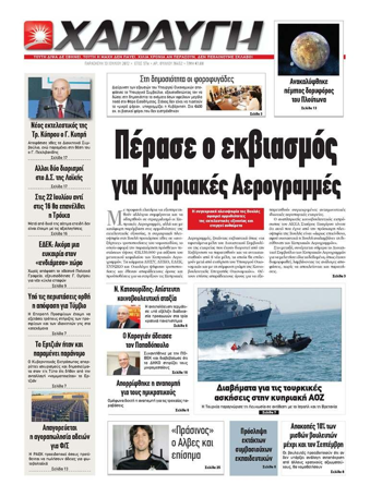 Η «Χαραυγή», με κύριο τίτλο «Πέρασε ο εκβιασμός για Κυπριακές Αερογραμμές», αναφέρει πως η συγκυριακή πλειοψηφία της Βουλής αφαιρεί αρμοδιότητες της εκτελεστικής εξουσίας και ενεργεί αυθαίρετα. Αλλού γράφει ότι ο Κοινοβουλευτικός Εκπρόσωπος του ΑΚΕΛ, Νίκος Κατσουρίδης μίλησε χθες στη Βουλή για απίστευτη κοινοβουλευτική αταξία καθώς η αντιπολίτευση τερμάτισε υπό εξέλιξη διαδικασία προαγωγών στα τρία κρατικά πανεπιστήμια. Σε άλλο θέμα γράφει ότι ο Καρογιάν άδειασε τον Νικόλα Παπαδόπουλο, διαβεβαιώνοντας την ΠΟΒΕΚ ότι το ΔΗΚΟ στηρίζει τους μικρομεσαίους.