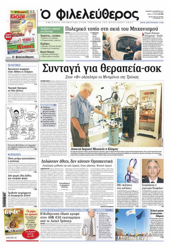 «Ο Φιλελεύθερος», υπό τον τίτλο «Φόροι και περικοπές», γράφει ότι κοκτέιλ μέτρων με γεύση φόρων και περικοπών επεξεργάζεται το Προεδρικό, σε συνεργασία με το Υπουργείο Οικονομικών. Πρόκειται για αντιπροτάσεις στα σενάρια της τρόικας, οι οποίες ενδέχεται να είναι έτοιμες ακόμα και σήμερα. Σε άλλο θέμα γράφει ότι όλα τα μάτια στραμμένα στην Κύπρο κατά τις επόμενες ημέρες αφού η οικονομική επικαιρότητα θα συζητηθεί στο ECOFIN, το οποίο θα πραγματοποιηθεί στη Λευκωσία. Αλλού γράφει ότι κτύπησαν ρέστα οι Ε/κ στα κατεχόμενα, 4,5 εκ. ευρώ για καζίνο, ξενοδοχεία και εισιτήρια για Τουρκία.