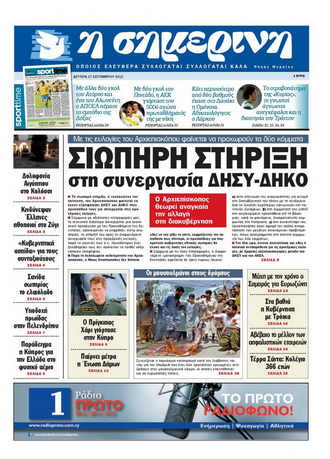 «Η Σημερινή» με κύριο τίτλο «Σιωπηρή στήριξη στη συνεργασία ΔΗΣΥ – ΔΗΚΟ » αναφέρει ότι τη σιωπηρή στήριξη ή τουλάχιστον την επίνευση του Αρχιεπισκόπου φαίνεται να έχουν εξασφαλίσει ΔΗΣΥ και ΔΗΚΟ στην προσπάθειά τους για συνεργασία στις προεδρικές εκλογές, αφού θεωρεί αναγκαία την αλλαγή στην διακυβέρνηση. Σε άλλο της θέμα η εφημερίδα γράφει ότι με δύο σφαίρες στο κεφάλι και μια στον θώρακα βρέθηκε νεκρός ο Μοχάμεντ Ελ Σάιτ Χουσεΐν Ελ Χαπάσιη, από την Αίγυπτο ύστερα από πυροβολισμό από άγνωστο άτομο. Αλλού γράφει ότι στα βαθιά μπαίνει από σήμερα η Κυβέρνηση με την Τρόικα αφού το οικονομικό της επιτελείο θα έχει συνάντηση με τον Ολλανδό Menno Snel, που εκπροσωπεί την Κύπρο στην εκτελεστική επιτροπή του ΔΝΤ, για διαβουλεύσεις με την Κυβέρνηση πάνω στα θέματα που άπτονται των συνομιλιών με την Τρόικα.
