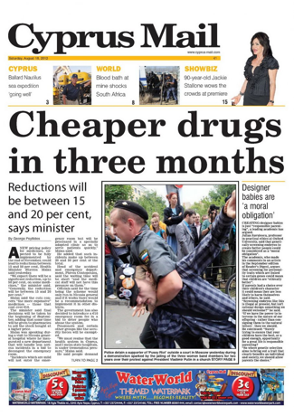 Η αγγλόγλωσση «Cyprus Μail» με κύριο τίτλο «Φθηνότερα φάρμακα σε τρεις μήνες» αναφέρεται στις δηλώσεις του Υπουργείου Υγείας για τη νέα τιμολογιακή πολιτική των φαρμάκων που θ’ αρχίσει να εφαρμόζεται προς το τέλος του Νοέμβρη και θα αφορά μειώσεις μεταξύ 15% και 50%. Αλλού γράφει ότι η έρευνα του θαλάσσιου εξερευνητή Ρόμπερτ Μπάλαρντ στην κυπριακή θάλασσα πάει καλά, ενώ σε άλλο θέμα αναφέρει πως τα ανεργιακά επιδόματα στοίχισαν στο κράτος σχεδόν 75 εκατομμύρια ευρώ από τον Ιανουάριο μέχρι τον Ιούνιο.