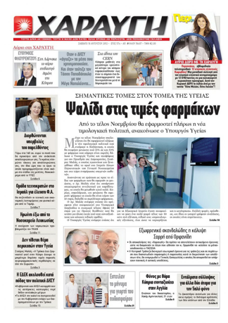 «Η Χαραυγή» έχει τίτλο «Ψαλίδι στις τιμές των φαρμάκων» και γράφει για σημαντικές τομές στον τομέα της υγείας από την νέα τιμολογιακή πολιτική που θα επιφέρει μειώσεις από 15% έως 50%. Αλλού αναφέρεται σε «εξωφρενικά σκανδαλώδη κάλυψη» του Μιχάλη Σαρρή από τον Αθανάσιο Ορφανίδη και αναφέρεται σε εσωτερική έρευνα της Κεντρικής Τράπεζας για τις εμπορικές τράπεζες. Σε άλλο θέμα γράφει ότι ομάδα τεχνοκρατών θα μεταβεί στο Ισραήλ για να συζητηθούν οι λεπτομέρειες για την έλευση φυσικού αερίου από το Ταμάρ.
