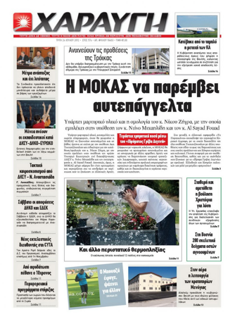 Η «Χαραυγή», με κύριο τίτλο «Η ΜΟΚΑΣ να παρέμβει αυτεπάγγελτα», γράφει πως υπάρχει μαρτυρικό υλικό, καταγγελίες και σωρεία πληροφοριών και θα μπορούσε η ΜΟΚΑΣ να ξεκινούσε αυτεπάγγελτη και σε βάθος έρευνα σε σχέση με την υπόθεση Ακη Τσοχατζόπουλου και ειδικότερα για την κατάθεση/ομολογία του Νίκου Ζήγρα με την οποία εμπλέκει στην υπόθεση τον πρώην Υπουργό Εσωτερικών επί διακυβέρνησης ΔΗΣΥ Ντίνο Μιχαηλίδη και τον επιχειρηματία Al Sayad Fouad. Αλλού αναφέρει πως κατέβηκε από το ταμπλό η μετοχή των Κυπριακών Αερογραμμών ενώ η Κυβέρνηση αναπέμπει τους όρους που ψήφισε η πλειοψηφία της Βουλής. Αλλού αναφέρει πως στη Βοσνία βρίσκονται 280 σκελετικά δείγματα οστών που πιστεύεται ότι ανήκουν σε 60 με 70 άτομα.