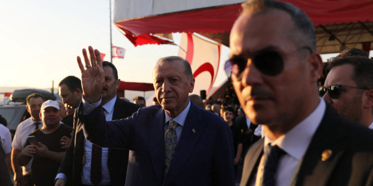 Ο Ερντογάν προσγειώθηκε στην Τύμπου, όπου εγκαινίασε το νέο αεροδρόμιο του Ερκάν.