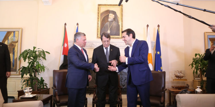 Επιπλέον η πρώτη τριμερής Σύνοδος Κορυφής Ελλάδας-Κύπρου-Ιορδανίας κατοχυρώνει τον ρόλο των τριών χωρών ως πυλώνες σταθερότητας, ειρήνης και ασφάλειας στην περιοχή, επισήμανε ο Έλληνας πρωθυπουργός, Αλέξης Τσίπρας, κατά τη διάρκεια των κοινών δηλώσεων με τον Πρόεδρο της Κυπριακής Δημοκρατίας, Νίκο Αναστασιάδη και τον βασιλιά της Ιορδανίας, Αμπντάλα Β’.