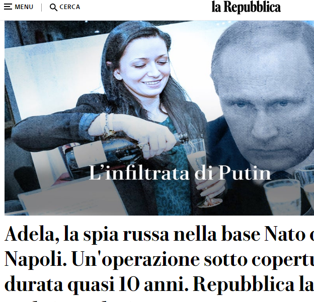 Η ιταλική εφημερίδα La Repubblica, με έρευνα που πραγματοποίησε σε συνεργασία με το γερμανικό περιοδικό Der Spiegel και ιστότοπους δημοσιογραφικών ερευνών, αποκάλυψε ότι από το 2008 μέχρι και το 2018, μια Ρωσίδα πράκτορας κατάφερε να παρεισφρήσει στην βάση του NATO στη Νάπολη.