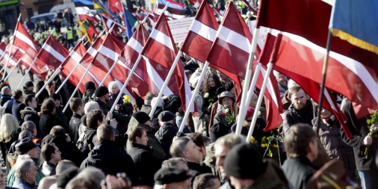 Λετονοί που είχαν πολεμήσει εναντίον της πρώην ΕΣΣΔ στις τάξεις των SS κατά τη διάρκεια του Β΄ Παγκοσμίου Πολέμου και υποστηρικτές τους διαδήλωσαν σήμερα στη Ρίγα υπό το βλέμμα ισχυρών αστυνομικών δυνάμεων.