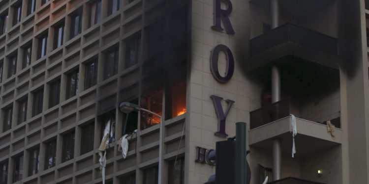 Σε τηλεοπτικά πλάνα που μετέδωσαν μέσα ενημέρωσης της χώρας εικονίζονται άνδρες του στρατού να έχουν κατακλύσει τον δρόμο έξω από το ξενοδοχείο, που ήταν γεμάτος ασθενοφόρα.