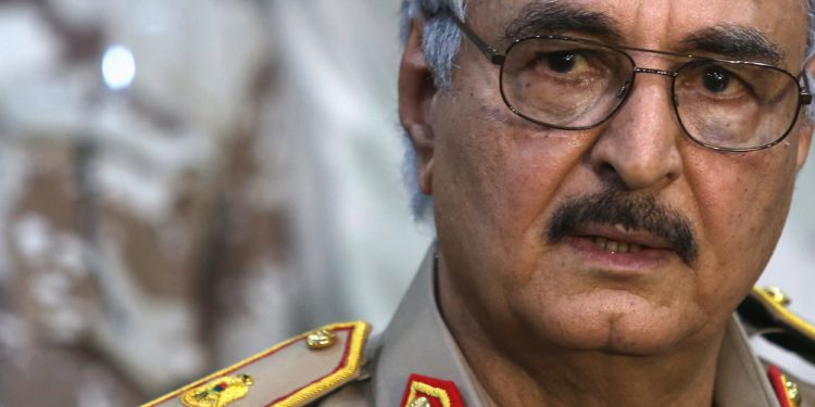 (Φωτογραφία Reuters – Στρατηγός Χαφταρ κατα την διάρκεια συνέντευξης τύπου)