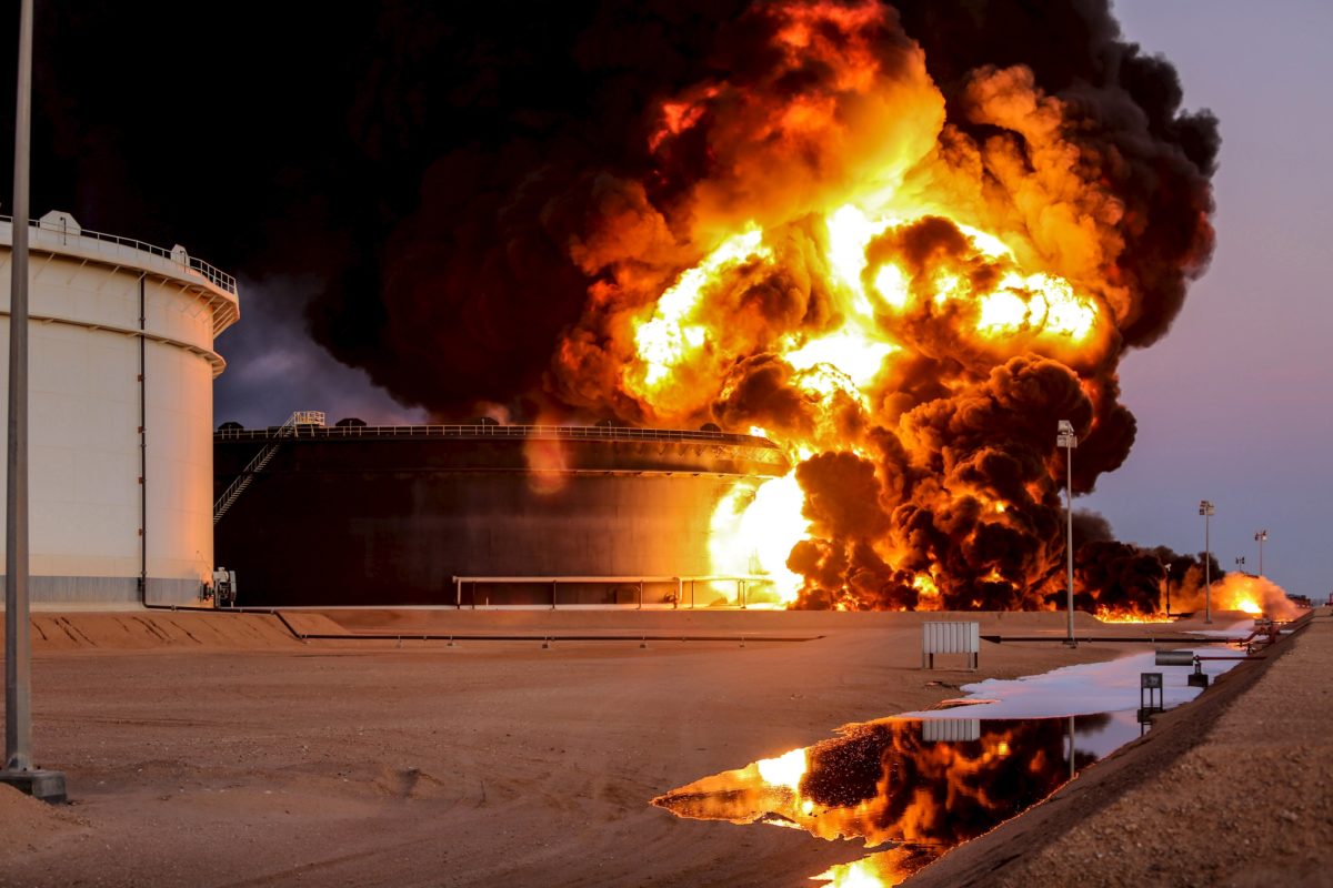 Τουλάχιστον δύο δεξαμενές αποθήκευσης πετρελαίου της εταιρείας Harouge Oil Operations πυρπολήθηκαν κοντά στο Ρας Λανούφ, όπου ένοπλοι είχαν εξαπολύσει κι άλλες επιθέσεις νωρίτερα αυτόν το μήνα.