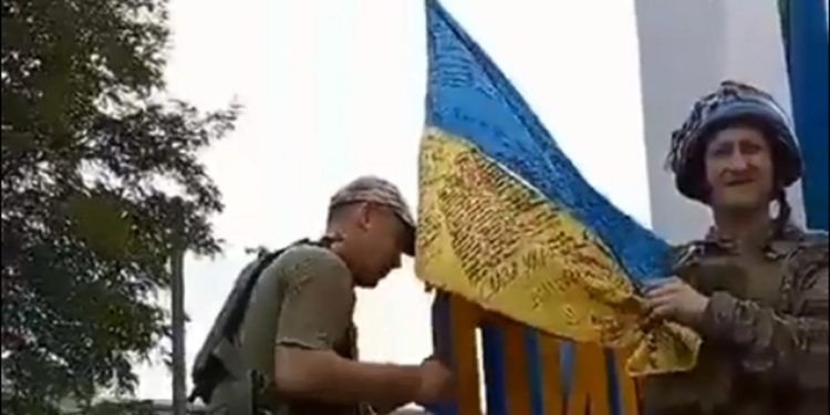 «1η Οκτωβρίου. Ξεδιπλώνουμε τη σημαία μας και την τοποθετούμε στη γη μας. Η Λιμάν θα είναι ουκρανική», δήλωσε ένας από τους στρατιώτες προτού τοποθετήσει τη σημαία πάνω σε μια ταμπέλα που έγραφε «Λιμάν» στον δρόμο προς την πόλη.