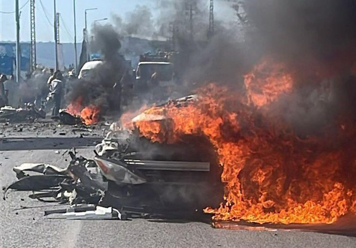 Φωτογράφος του Γαλλικού Πρακτορείου είδε ένα εντελώς απανθρακωμένο όχημα κοντά στην παραλιακή πόλη της Τύρου, έξω από τον παλαιστινιακό προσφυγικό καταυλισμό της Ρασιντίγια.