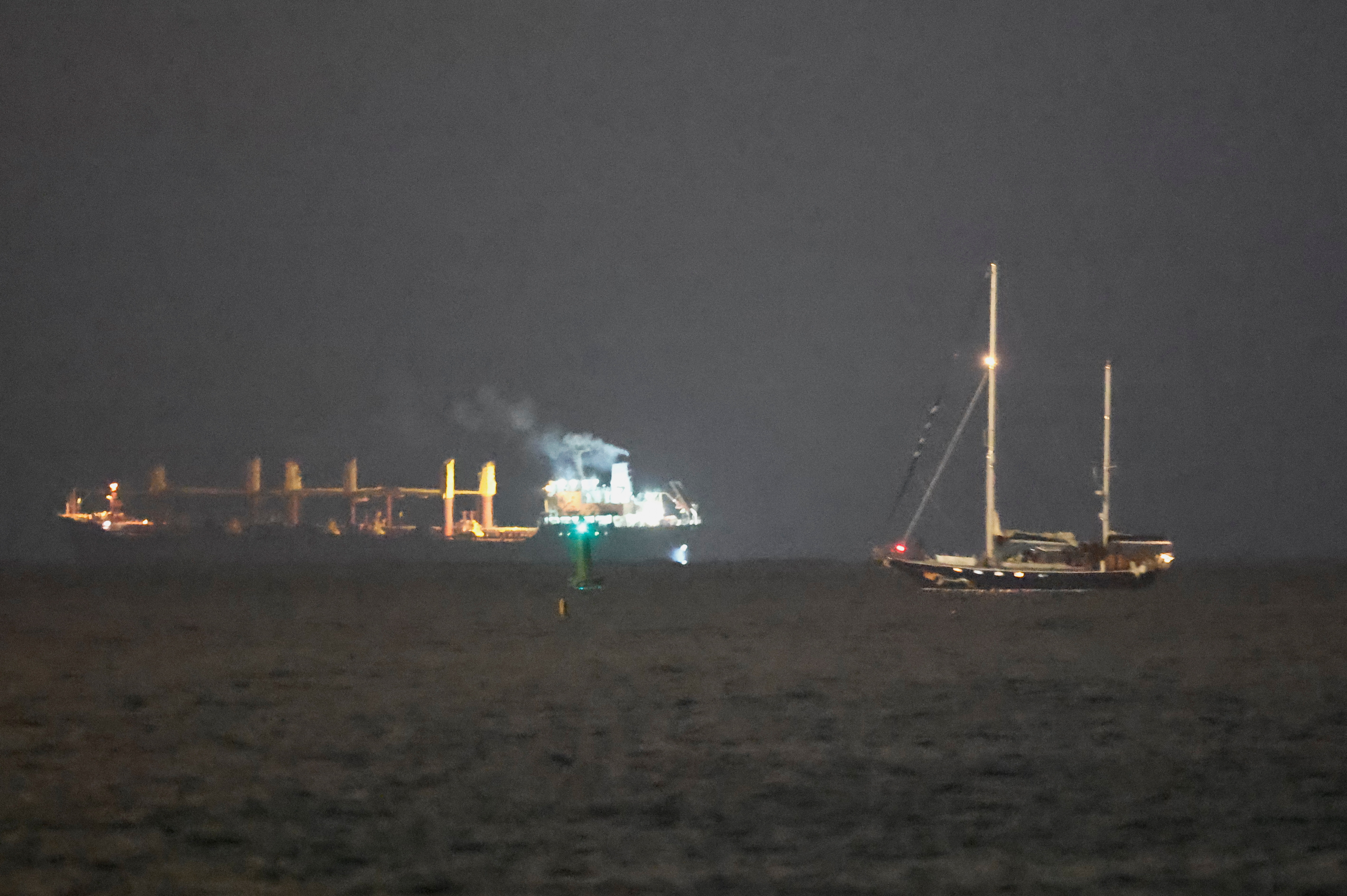 Φωτογραφίες που τράβηξε το Associated Press δείχνουν το Madleen να συνοδεύεται στο λιμάνι από ένα σκάφος του ισραηλινού Πολεμικού Ναυτικού.