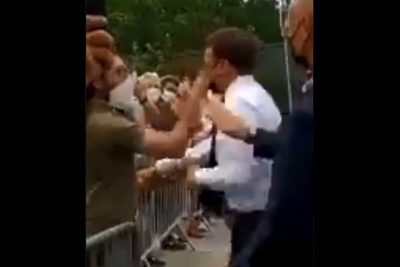 Στο βίντεο που αναρτήθηκε στο Twitter, ο Μακρόν διακρίνεται να προσεγγίζει ένα πλήθος ανθρώπων, κατόπιν να συνομιλεί με έναν άνδρα. Στη συνέχεια ο άνδρας, που φοράει ένα πράσινο μπλουζάκι, γυαλιά και μάσκα, φαίνεται να φωνάζει «A Bas La Macronie» («Κάτω ο ‘μακρονισμός’») και κατόπιν να τον χαστουκίζει. Η ασφάλεια του Γάλλου προέδρου επεμβαίνει, ακινητοποιεί τον άνδρα και απομακρύνει τον Μακρόν.