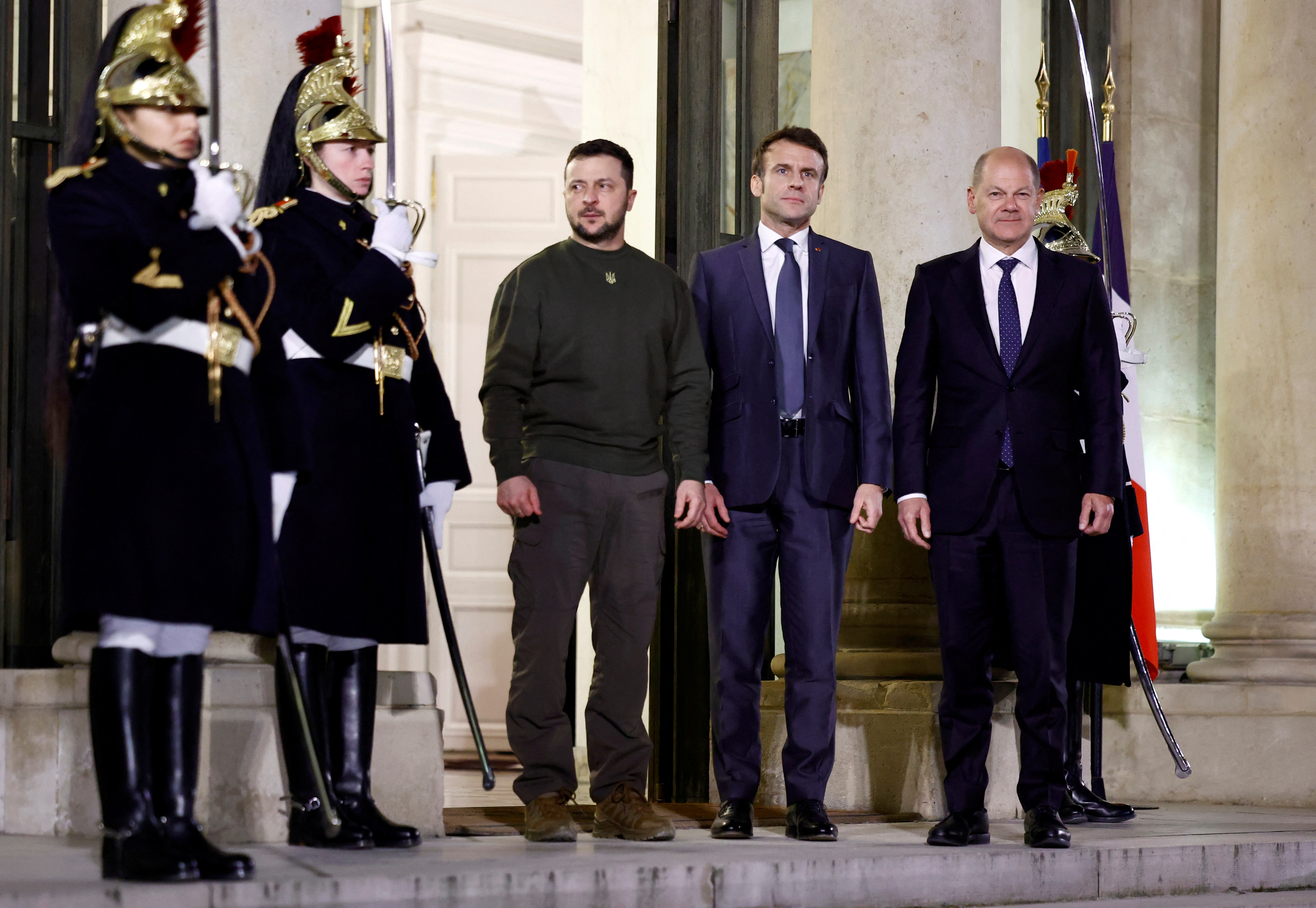Για την κοινή βούληση της Γαλλίας και της Γερμανίας να συνεχίσουν να ενισχύουν την Ουκρανία διαβεβαίωσε ο Γάλλος πρόεδρος Εμανουέλ Μακρόν τον Ουκρανό ομόλογό του Βολοντίμιρ Ζελένσκι, τον οποίο υποδέχθηκε μαζί με τον Γερμανό καγκελάριο Όλαφ Σολτς στο μέγαρο των Ηλυσίων Πεδίων στο Παρίσι.