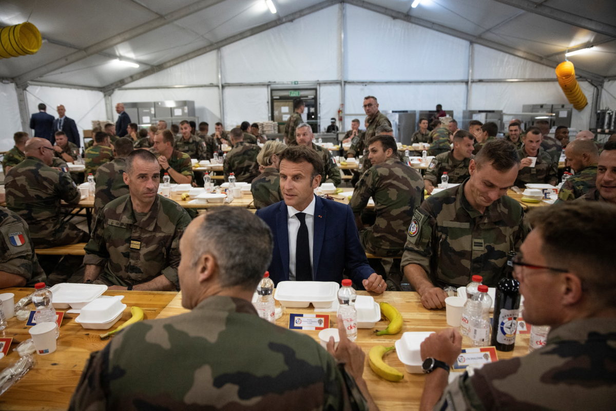 Ο Μακρόν, που έφθασε χθες Τρίτη το βράδυ στη Ρουμανία, στην αεροπορική βάση Μιχαήλ Κογκαλνιτσεάνου, κοντά στην Κωστάντζα, δείπνησε με Γάλλους στρατιώτες σε αυτή τη στρατηγική βάση στη Μαύρη Θάλασσα προτού αποφασίσει να μείνει και να κοιμηθεί εκεί σε ένα αντίσκηνο και όχι σε ξενοδοχείο, σύμφωνα με το Μέγαρο των Ηλυσίων.