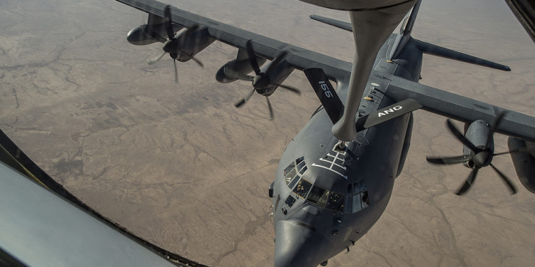 Μια φωτογραφία που δείχνει τον εναέριο ανεφοδιασμό ενός MC-130J Commando II από ένα ιπτάμενο τάνκερ KC-135R επιβεβαιώνει για πρώτη φορά την συμμετοχή των συγκεκριμένων αεροσκαφών Ειδικών Επιχειρήσεων στην μάχη κατά του Iσλαμικού Κράτους σε Συρία και Ιράκ, στο πλαίσιο της Eπιχείρησης Inherent Resolve. Τα MC-130J που αντικατέστησαν τα MC-130N/P Combat Shadow II αποτελούν την σύγχρονη έκδοση του βετεράνου “Ηρακλή” για την ανάληψη/υποστήριξη Ειδικών Επιχειρήσεων, παρέχοντας εναέριο ανεφοδιασμό σε ελικόπτερα Ειδικών Επιχειρήσεων, διείσδυση/απομάκρυνση/ανεφοδιασμό ομάδων Ειδικών Δυνάμεων είτε με ρίψη τους με αλεξίπτωτο ή με προσγείωση του αεροσκάφους σε απομακρυσμένους διαδρόμους υπό “ειδικές τακτικές συνθήκες”.