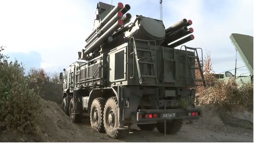 Οι εκτοξευτές τοποθετούνται αργότερα σε θέση πυροδότησης, έτοιμοι να καταρρίψουν εισερχόμενα αεροσκάφη και πυραύλους εχθρών. Τα συστήματα πυραύλων Pantsir-S μπορούν επίσης να φανούν εξασφαλίζοντας την περιοχή.