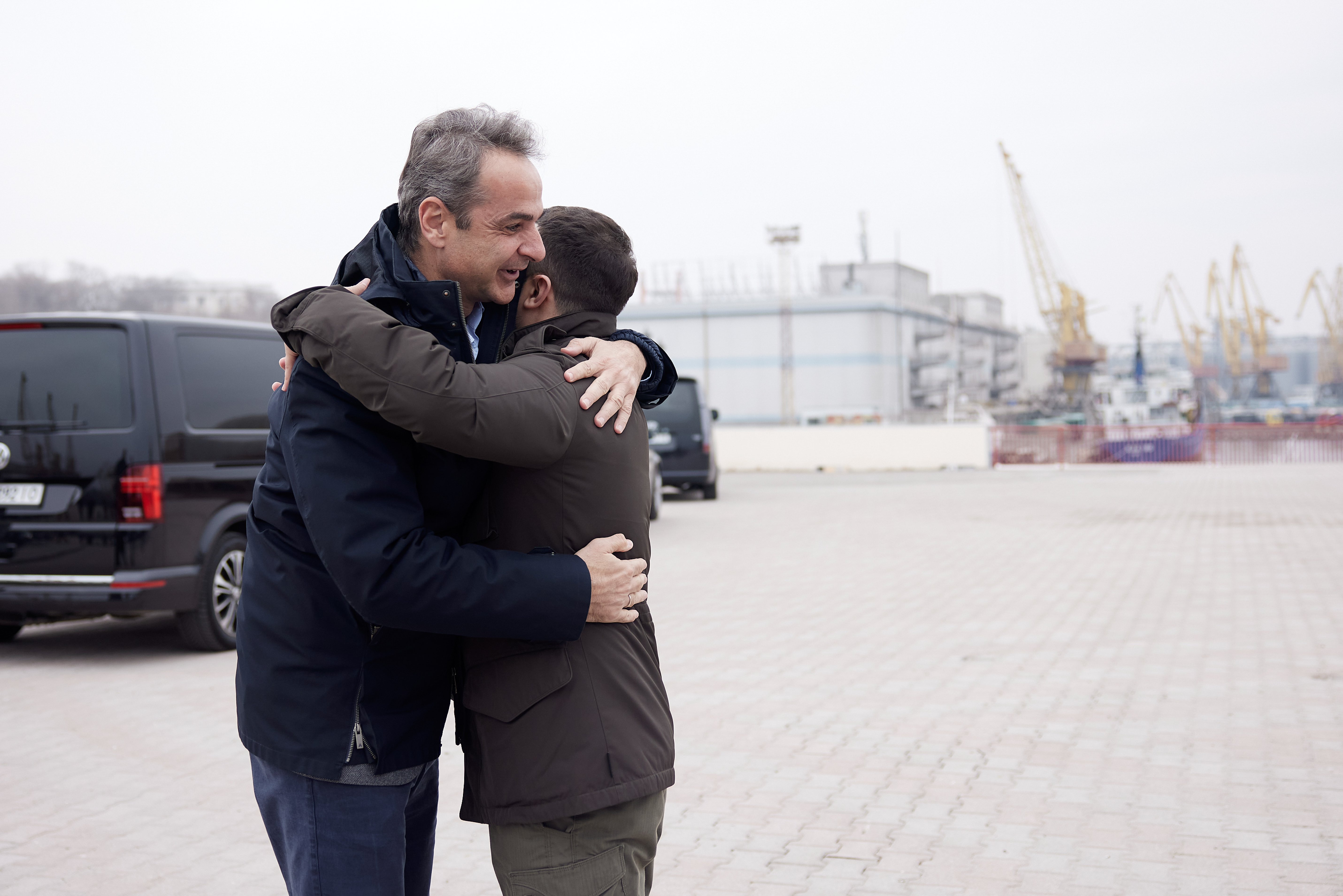 Ο Πρωθυπουργός αρχικά επισκέφθηκε το λιμάνι της πόλης, όπου τον υποδέχτηκε ο Ουκρανός Πρόεδρος, και ενημερώθηκε για την λειτουργία του διαδρόμου εξαγωγής σιτηρών μέσω της Μαύρης Θάλασσας και του Δούναβη.