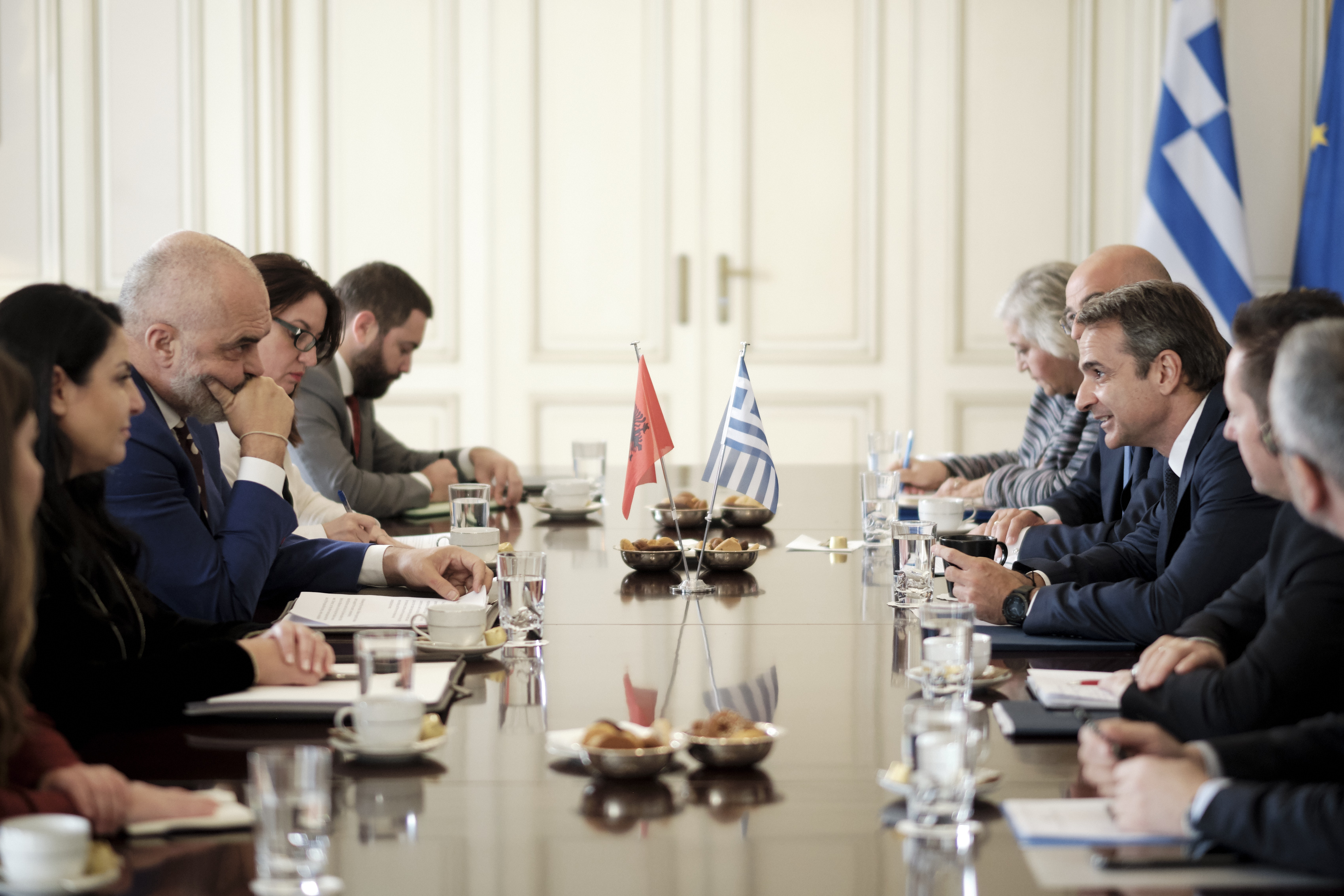 Σε θετικό κλίμα πραγματοποιήθηκε η συνάντηση που είχε ο πρωθυπουργός, Κυριάκος Μητσοτάκης, με τον πρωθυπουργό της Αλβανίας Έντι Ράμα.