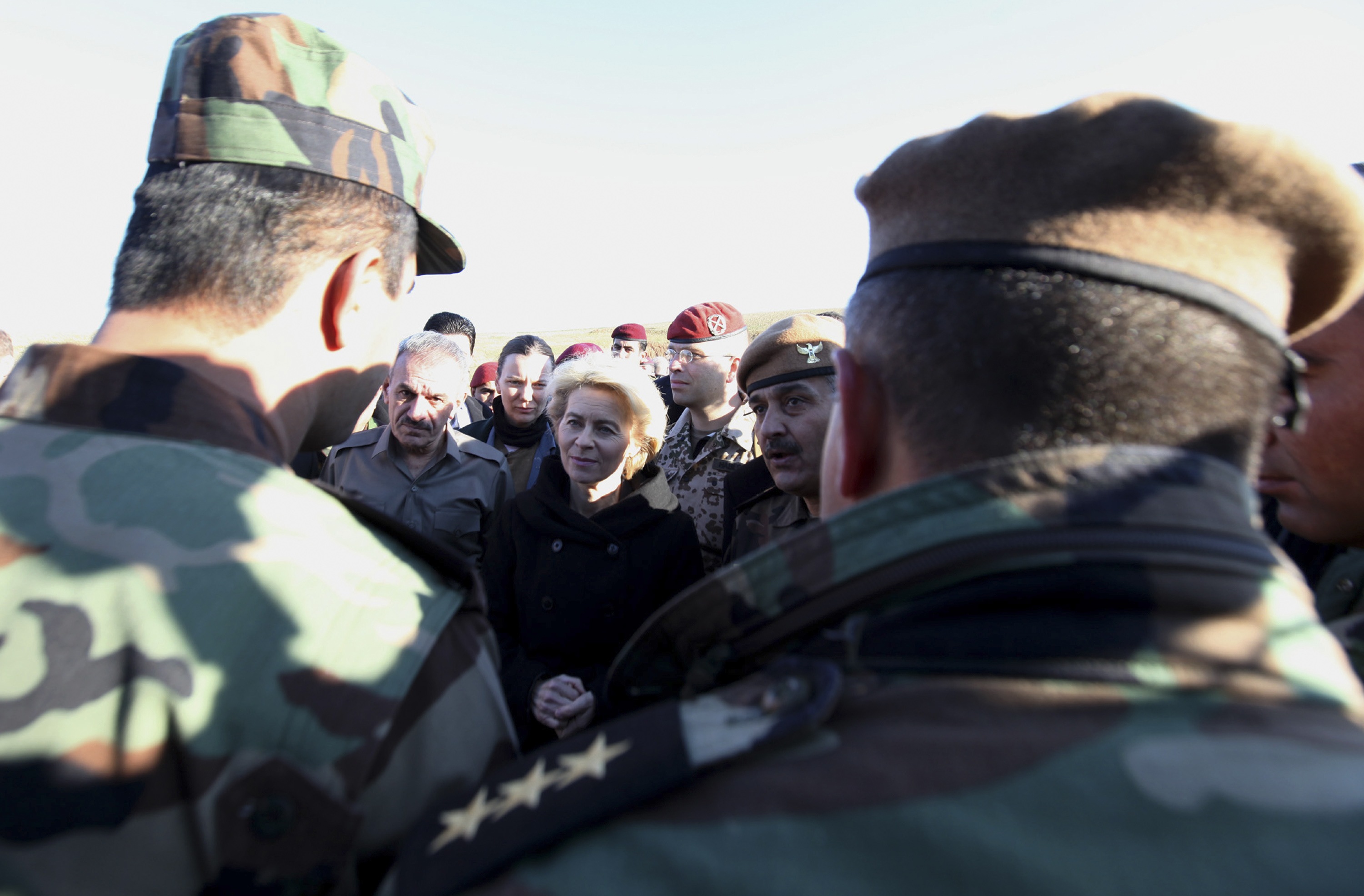 Οι Πεσμεργκά, ενα είδος τακτικού στρατού, επιδιώκουν την καλύτερη εκπαίδευση και εξοπλισμό τους. Τις προάλλες ζήτησαν από τη Γερμανίδα υπουργό Άμυνας κ. Ούρσουλα φον ντερ Λέιεν, κατά την επίσκεψή της στο βόρειο Ιράκ, περισσότερα όπλα.