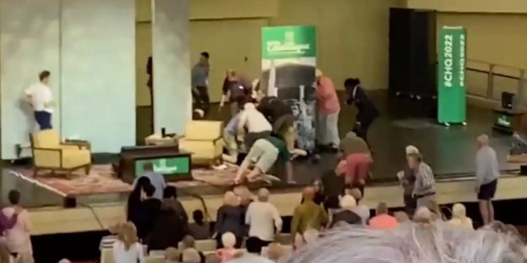 NOW – Salman Rushdie is stabbed on stage in New York.pic.twitter.com/qFmYE6BC5E