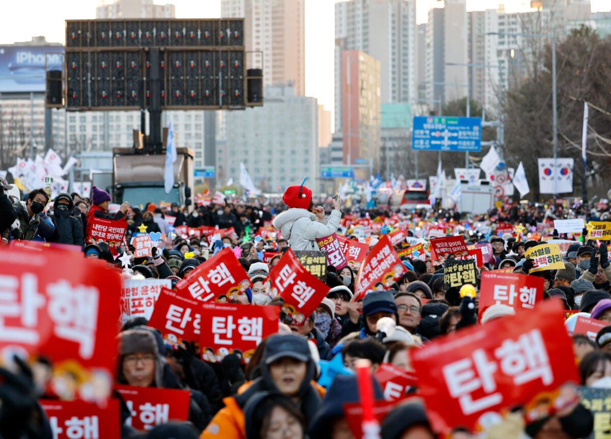 Παράλληλα, ο αρχηγός της νοτιοκορεατικής αντιπολίτευσης κάλεσε σήμερα το Συνταγματικό Δικαστήριο να αποφασίσει σχετικά με την καθαίρεση του Γιουν γρήγορα, προκειμένου η χώρα να μπορέσει να ανακάμψει από την «εθνική αναταραχή» και την «παράλογη κατάσταση» που δημιουργήθηκε με την αιφνιδιαστική επιβολή στρατιωτικού νόμου την 3η Δεκεμβρίου.