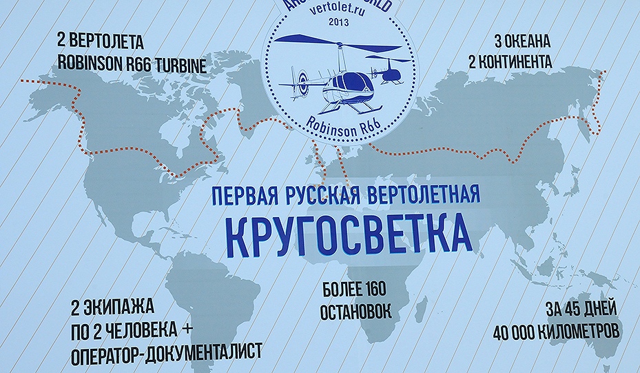 Η εκκίνηση για το γύρο του κόσμου με ελικόπτερα έγινε στο ελικοδρόμιο κοντά στη Μόσχα, στις 2 Αυγούστου.