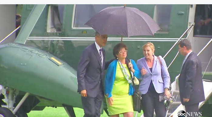 Απλές και φυσιολογικές ανθρώπινες κινήσεις ξένων ηγετών για εμάς τους Έλληνες αποτελούν -δυστυχώς- ακόμη είδηση. Ανεξάρτητα αν κάποιοι μπορεί να υποστηρίξουν ότι όσα κάνει ο Ομπάμα είναι αποτέλεσμα “επικοινωνιακού μάρκετινγκ” κάποιες απλές κινήσεις τους μπροστά σε κάμερες στέλνουν το αυτονόητο μήνυμα στους πολίτες ότι “είμαι ένας από σας”. Μετά απο την κίνησή του να κατέβει από το Προεδρικό ελικόπτερο ενώ είχε ήδη επιβιβαστεί,για να χαιρετήσει τον πεζοναύτη ,τώρα δείχνει ότι έχει τρόπους με τις κυρίες. Στο βίντεο αποβιβάζεται από το ίδιο ελικόπτερο ενώ βρέχει καταρρακτωδώς. Ανοίγει την ομπρέλα του αλλά δεν φεύγει. Αναμένει υπομονετικά τις δύο κυρίες που επέβαιναν μαζί του στο ελικόπτερο για να μοιραστεί μαζί τους την ομπρέλα του. Ωραίος ο Πρόεδρος.