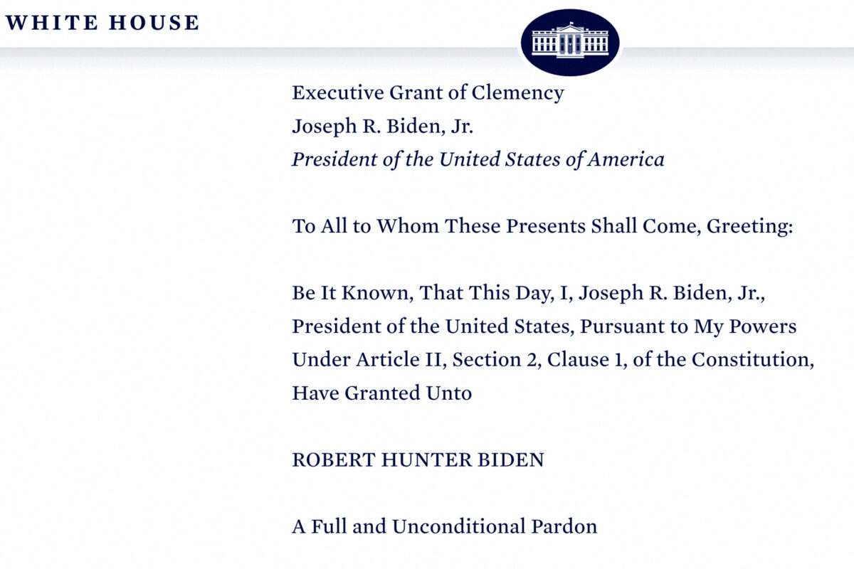 Ο Δημοκρατικός αρχηγός του κράτους είχε διαβεβαιώσει επανειλημμένα πως δεν θα προχωρούσε στην απονομή προεδρικής χάριτος στον γιο του. Ο Λευκός Οίκος το επαναβεβαίωσε μόλις τον Σεπτέμβριο. Ο Χάντερ Μπάιντεν, 54 ετών, δήλωσε ένοχος εκείνο τον μήνα ενώπιον δικαστηρίου στο Λος Άντζελες για φορολογική απάτη, αποφεύγοντας νέα δίκη.