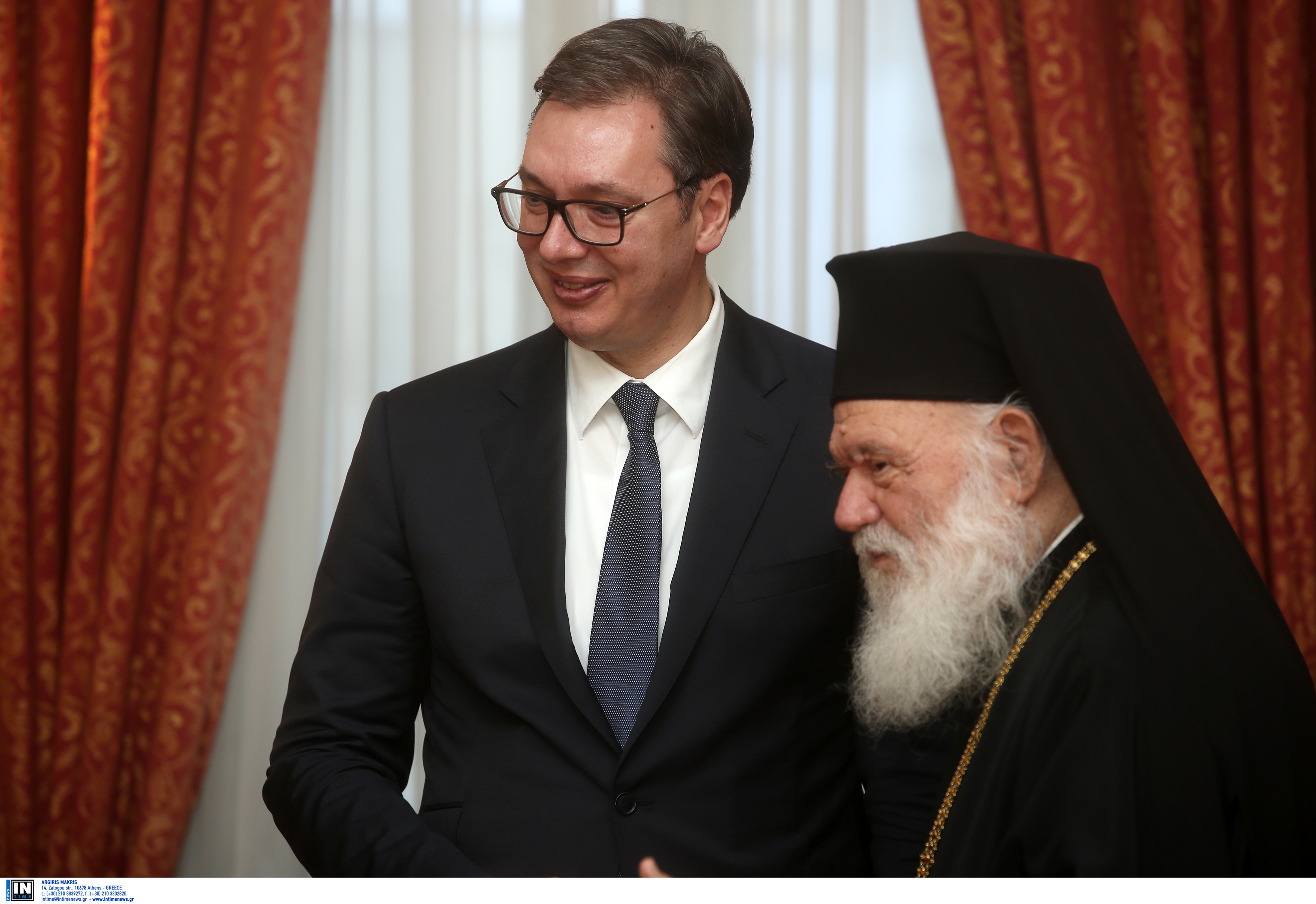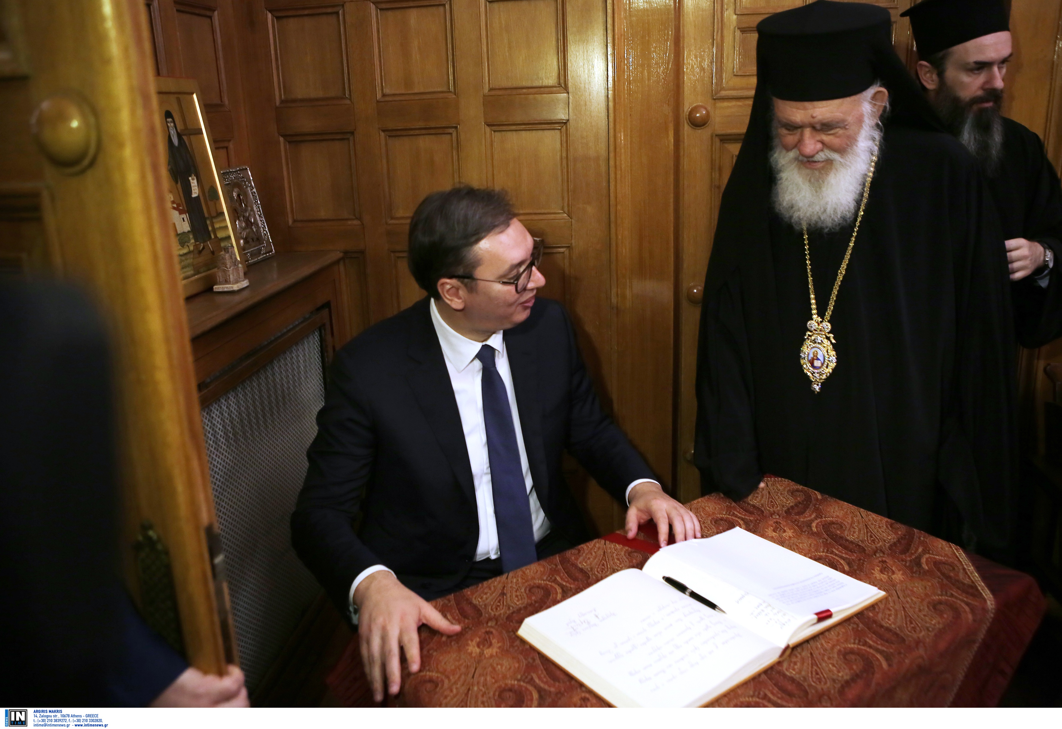 Τον Πρόεδρο της Σερβίας, Αλεξάνταρ Βούτσιτς και υπουργούς της σερβικής κυβέρνησης υποδέχθηκε σήμερα στην Αρχιεπισκοπή Αθηνών ο Αρχιεπίσκοπος Ιερώνυμος.