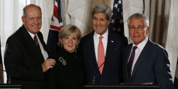 Ο υπουργοί Άμυνας και Εξωτερικών, Τσακ Χάγκελ και Τζον Κέρι είναι στο Σίδνεϊ για να οριστικοποιήσουν τη συμφωνία που επετεύχθη μεταξύ του αμερικανού προέδρου Μπαράκ Ομπάμα και του πρωθυπουργού της Αυστραλίας Τόνι Άμποτ και η οποία προβλέπει την ανάπτυξη αμερικανών πεζοναυτών στην Αυστραλία για κοινές ασκήσεις και εκπαίδευση.