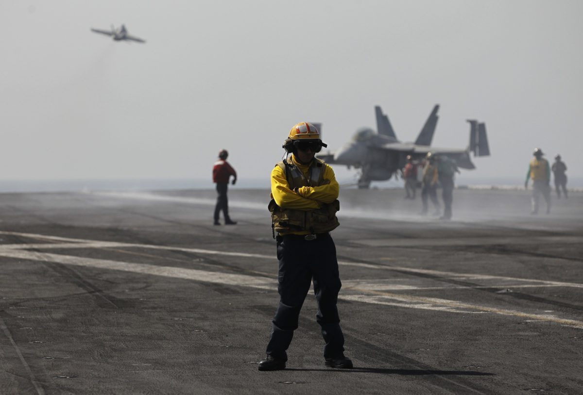 Οι Ηνωμένες Πολιτείες, που ξεκίνησαν την περασμένη εβδομάδα αεροπορικές επιδρομές – στην παραπάνω φωτογραφία του Reuters μαχητικά αεροσκάφη απογειώνονται απο το USS George H.W Bush που βρίσκεται στον κόλπο – κατά των θέσεων των δυνάμεων του Ισλαμικού Κράτους (ο χάρτης των επιθέσεων των ΗΠΑ στο Ιράκ), συντονίζουν τις ενέργειες των δυτικών χωρών στην επιχείρηση αρωγής των αμάχων, ενώ τώρα η Ουάσινγκτον εξετάζει διάφορους τρόπους για την απομάκρυνσή τους από το Ορος Σιντζάρ, δήλωσε ο αμερικανός υπουργός Εξωτερικών, από τη Χονιάρα, πρωτεύουσα των Νησιών του Σολομώντα.