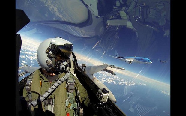 Οι φωτογραφίες selfies είναι η τρέλα της εποχής. Από την οποία έχουν “προσβληθεί” μαζικά πιλότοι μαχητικών αεροσκαφών. Οι φωτογραφίες είναι τραβηγμένες από πιλότους F-16 της Ολλανδικής Πολεμικής Αεροπορίας οι οποίοι συνιδεύουν το αεροσκάφος Dreamliner. Οι φωτογραφίες δημοσιεύθηκαν στην Telegraph.