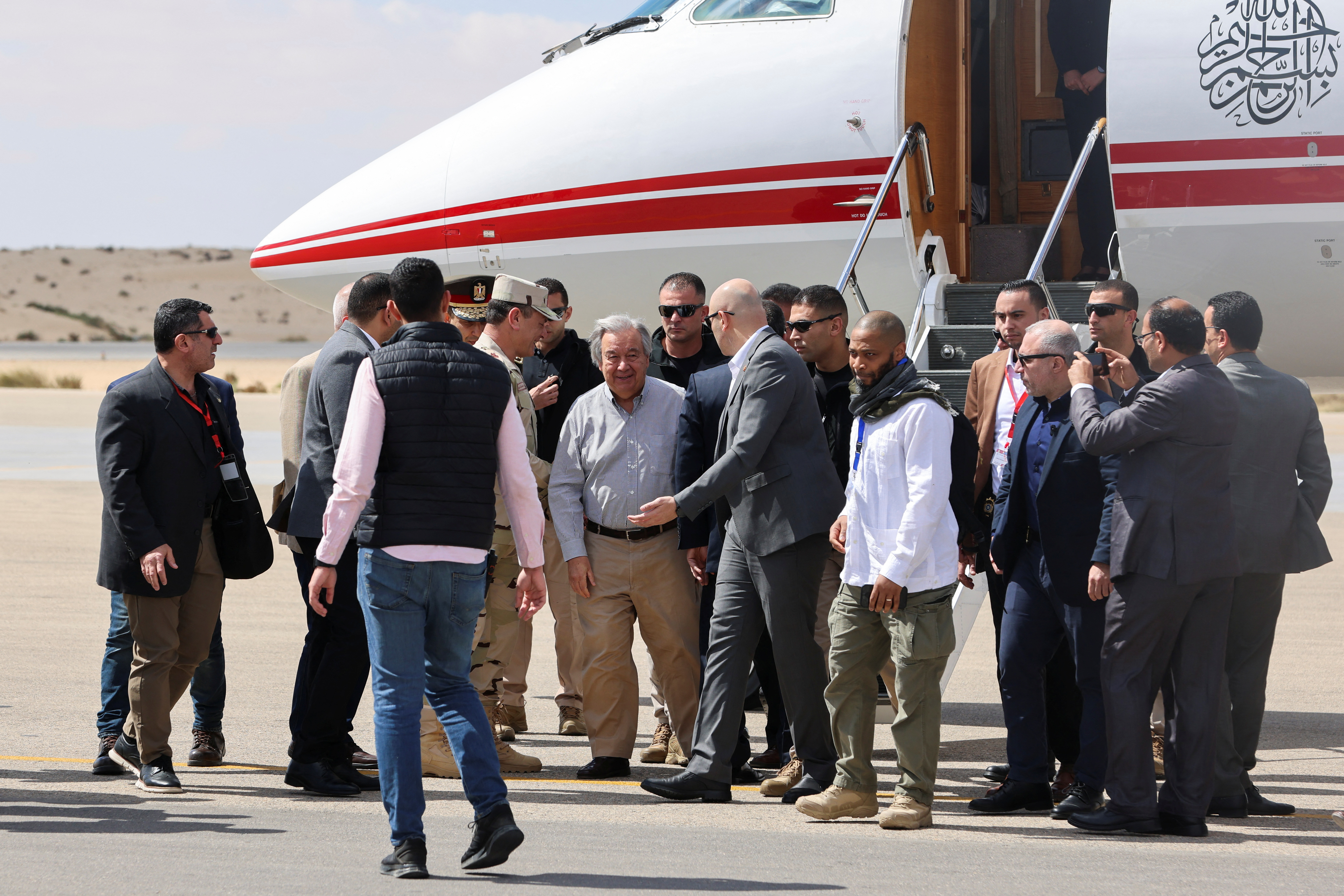 Πριν από την επίσκεψη στα σύνορα, όπου συναντήθηκε με εργαζόμενους στις υπηρεσίες αρωγής του ΟΗΕ, ο Γκουτέρες μετέβη στο Αλ Άρις στο βόρειο τμήμα του Σινά της Αιγύπτου, όπου μεγάλο μέρος της διεθνούς βοήθειας για τη Γάζα παραδίδεται και αποθηκεύεται.