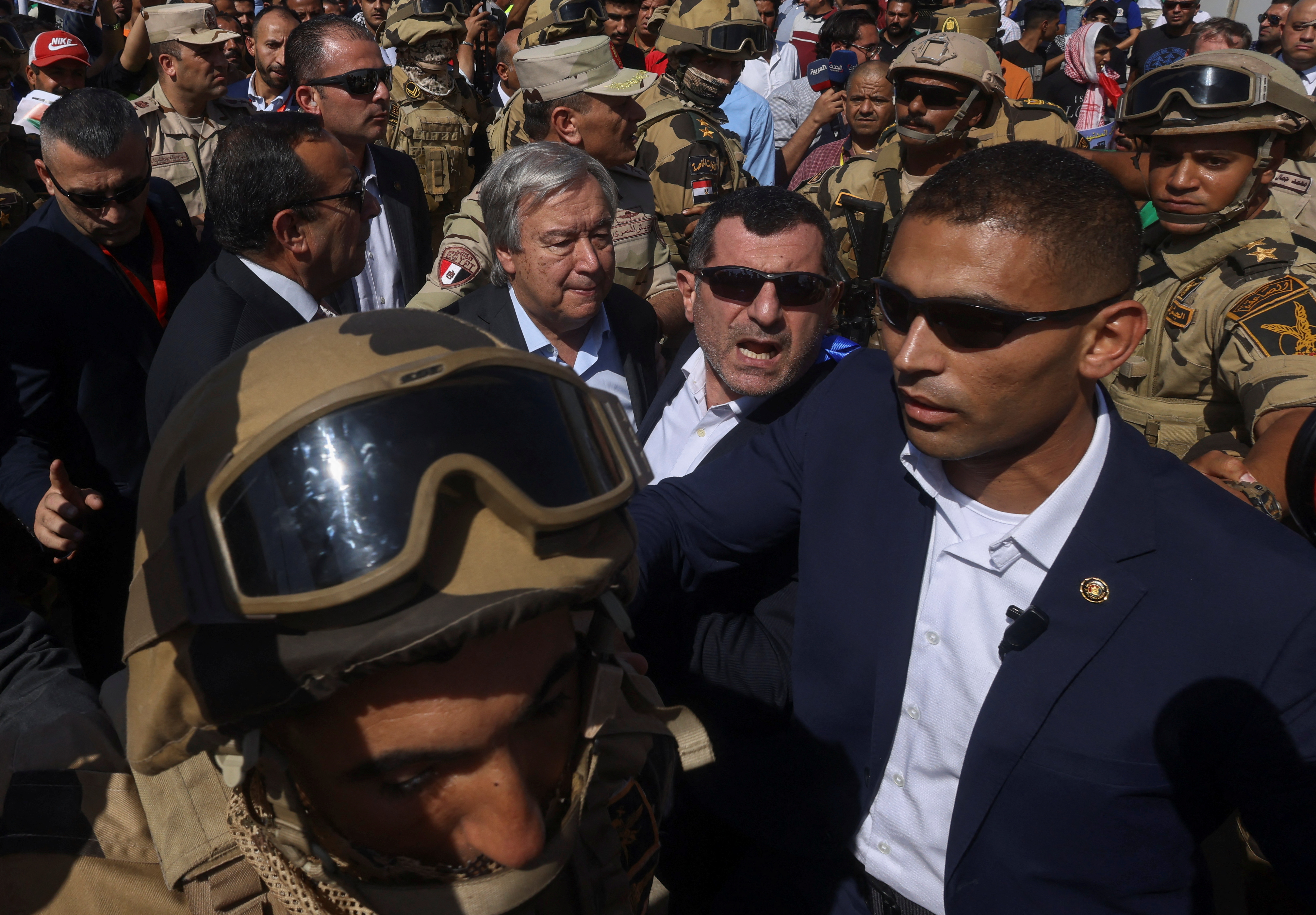 Ο Γενικός Γραμματέας του ΟΗΕ Αντόνιο Γκουτέρες επισκέφθηκε σήμερα το συνοριακό πέρασμα της Ράφα και είπε πως τα φορτηγά που μεταφέρουν βοήθεια πρέπει να κινηθούν το ταχύτερο δυνατό από την Αίγυπτο προς τον πολιορκημένο παλαιστινιακό θύλακα της Γάζας προκειμένου να μετριάσουν μια ανθρωπιστική κρίση.