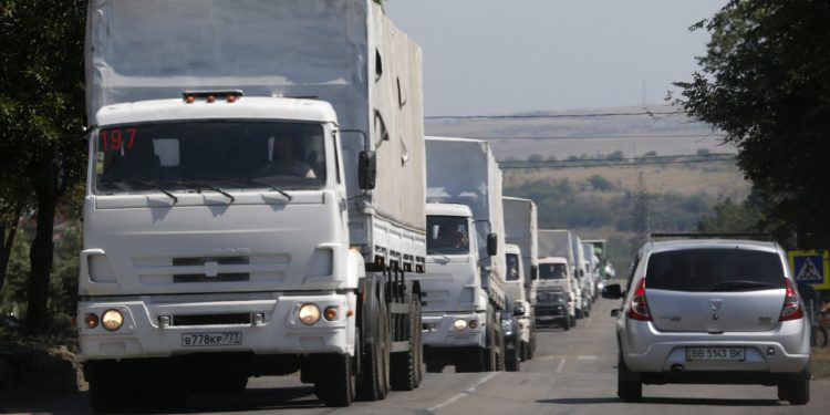 Συνολικά περίπου 90 λευκού χρώματος φορτηγά από τη ρωσική αυτοκινητοπομπή ανθρωπιστικής βοήθειας διέσχισαν τα σύνορα Ρωσίας – Ουκρανίας, δήλωσε αυτόπτης μάρτυρας στο πρακτορείο Ρόιτερς, ενώ ουκρανική κυβερνητική πηγή επισήμανε πως τα ρωσικά φορτηγά διέσχισαν τα σύνορα χωρίς άδεια από το Κίεβο και χωρίς να έχει προηγουμένως συμφωνηθεί η συνοδεία τους από τη Διεθνή Επιτροπή του Ερυθρού Σταυρού (ΔΕΕΣ).