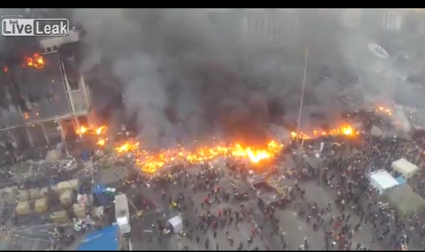 Όπως φαινεται στο βίντεο του ‘drone’ η πλατεία Ανεξαρτησίας στο Κίεβο παραμένει πεδίο μάχης.