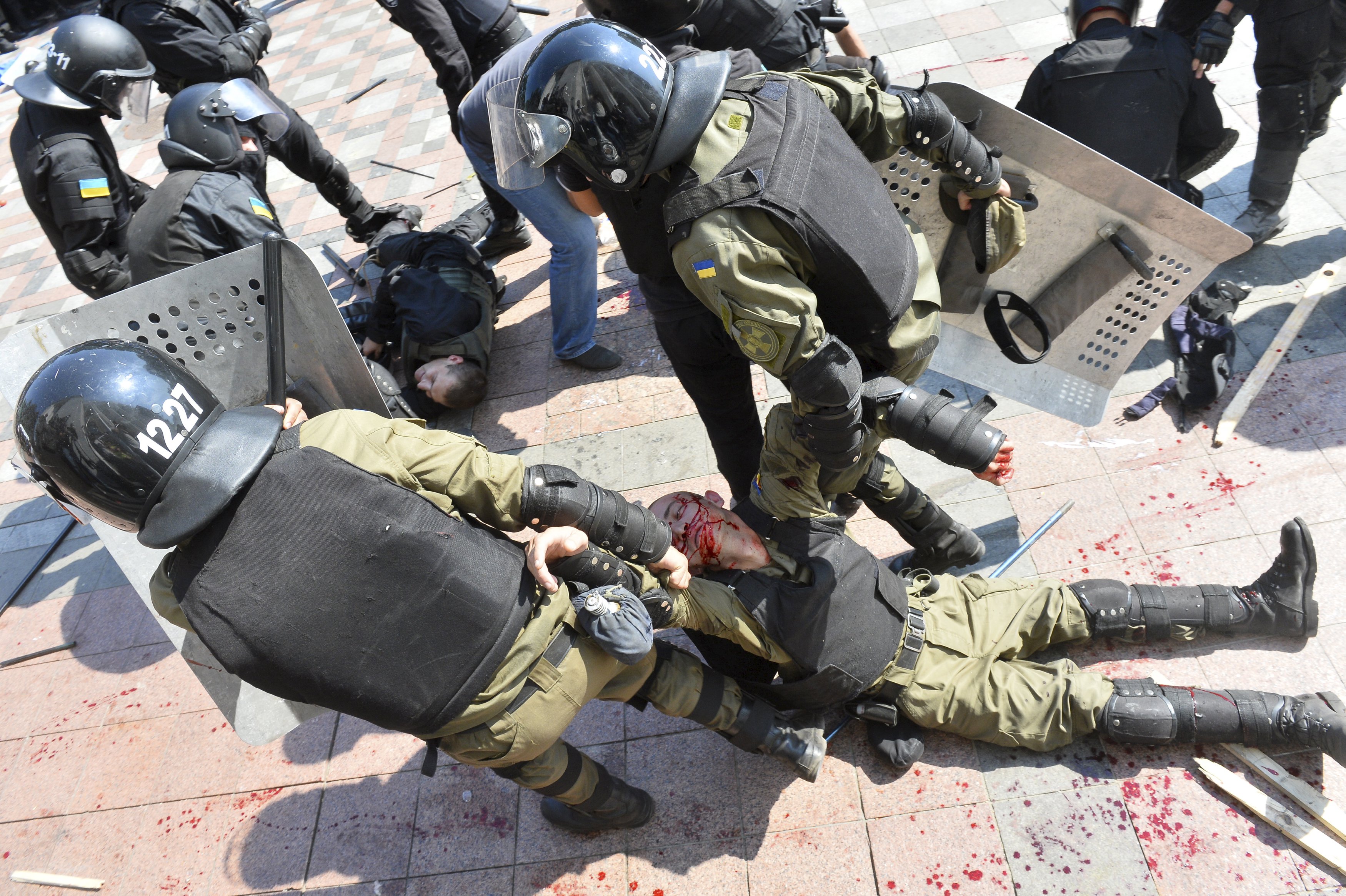 Τα επεισόδια ξέσπασαν ανάμεσα σε αστυνομικούς και οπαδούς του εθνικιστικού κόμματος Σβόμποντα έπειτα από την έγκριση από το κοινοβούλιο σε πρώτη ανάγνωση των συνταγματικών τροποποιήσεων που εισηγήθηκε ο πρόεδρος Πέτρο Ποροσένκο για την αποκέντρωση της εξουσίας και είχαν ως αποτέλεσμα να σκοτωθεί ένας αστυνομικός και να τραυματιστούν περίπου 100 άνθρωποι, ανάμεσά τους ένας υφυπουργός της ουκρανικής κυβέρνησης και δύο γάλλοι δημοσιογράφοι.
