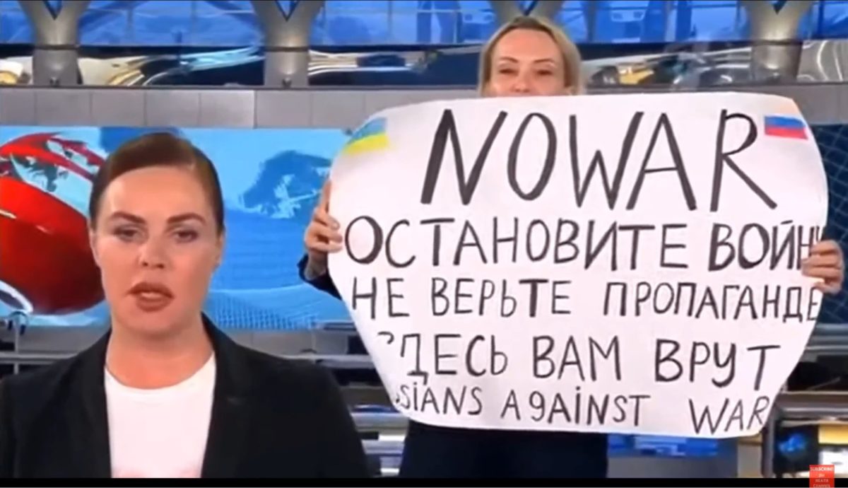 Η Οβσιάνικοβα, ως υπάλληλος της ρωσικής κρατικής τηλεόρασης, είχε κρατήσει ένα πανό διαμαρτυρίας κατά του πολέμου στη διάρκεια μιας τηλεοπτικής μετάδοσης τον Μάρτιο.