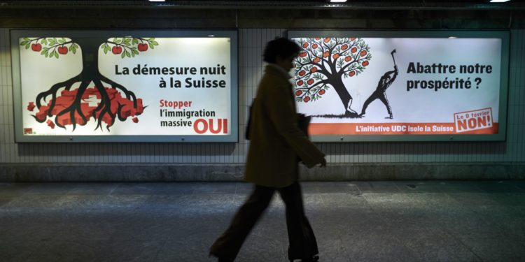 Έχει όμως υπογράψει διμερείς συμφωνίες, ύστερα από πενταετή διαπραγμάτευση, αποδεχόμενη να ανοίξει την αγορά εργασίας της στα 500 εκατομμύρια των κατοίκων της ΕΕ. Όταν τέθηκε σε ισχύ το σύμφωνο ελεύθερης κυκλοφορίας –κάτι που έγινε σταδιακά από το 2002– οι ελβετικές αρχές είχαν ανακοινώσει ότι οι αφίξεις μεταναστών έφταναν το πολύ τις 8.000 ετησίως. Σήμερα ωστόσο η Ελβετία υποδέχεται κάθε χρόνο 80.000 ξένους εργαζόμενους γεγονός που έχει προκαλέσει την οργή του λαϊκιστικού δεξιού κόμματος SVP/UDC, του μεγαλύτερου στο ελβετικό κοινοβούλιο.
