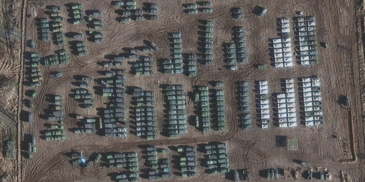 Οι εικόνες, που καταγράφηκαν τη Δευτέρα από τη Maxar Technologies, δείχνουν επίσης σκηνές στρατιωτών και ένα διοικητήριο, καθώς και τεθωρακισμένες μονάδες και εξοπλισμό υποστήριξης.