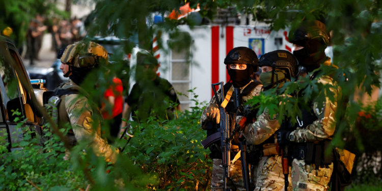 «Ο δράστης πέθανε επί τόπου. Σύμφωνα με τις προκαταρκτικές πληροφορίες, ανατινάχθηκε», δήλωσε ο υπουργός Εσωτερικών Ιγκόρ Κλιμένκο σε μέσα κοινωνικής δικτύωσης, γνωστοποιώντας ότι δύο αστυνομικοί τραυματίστηκαν.