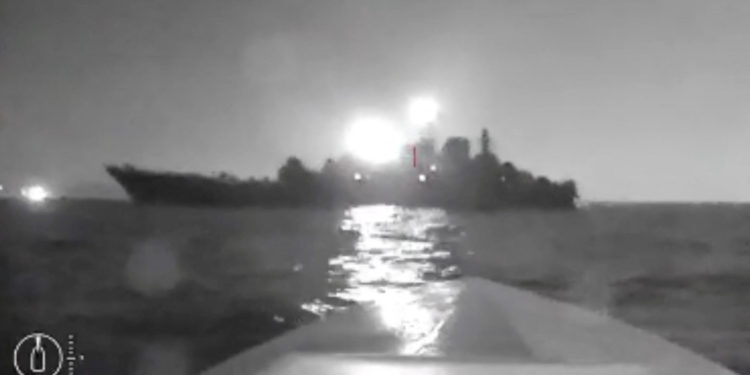 Την Πέμπτη, ο Φεντόροφ ανήρτησε στα μέσα κοινωνικής δικτύωσης ένα θολό βίντεο που φαίνεται να έχει τραβηχτεί από σκάφος που κατευθύνεται προς ένα πολύ μεγαλύτερο πολεμικό πλοίο και ακολουθεί έκρηξη.